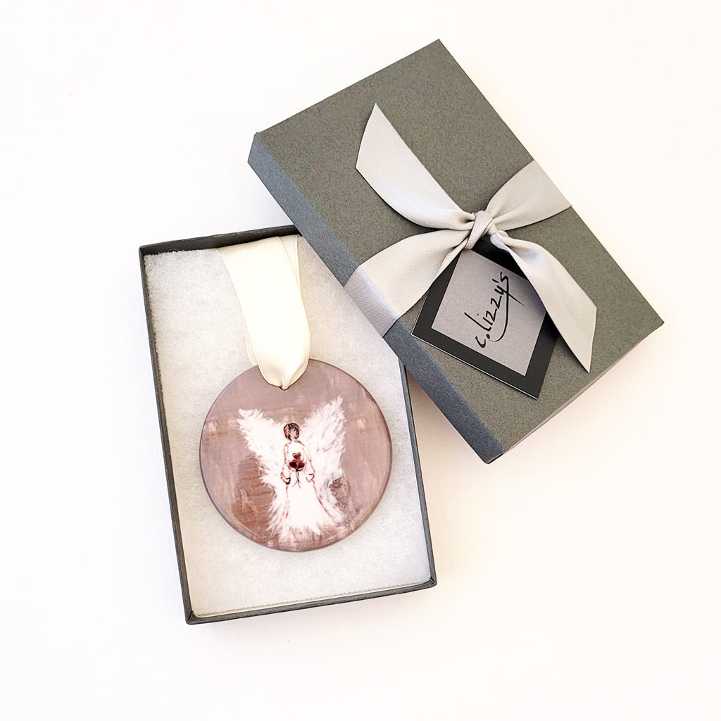 Made from Liz’s original hand-painted artwork, this ceramic angel carries a quiet message of comfort and connection. Soft wings and a small heart at the center create a piece meant to reassure, encourage, and gently remind someone they are loved and remembered.