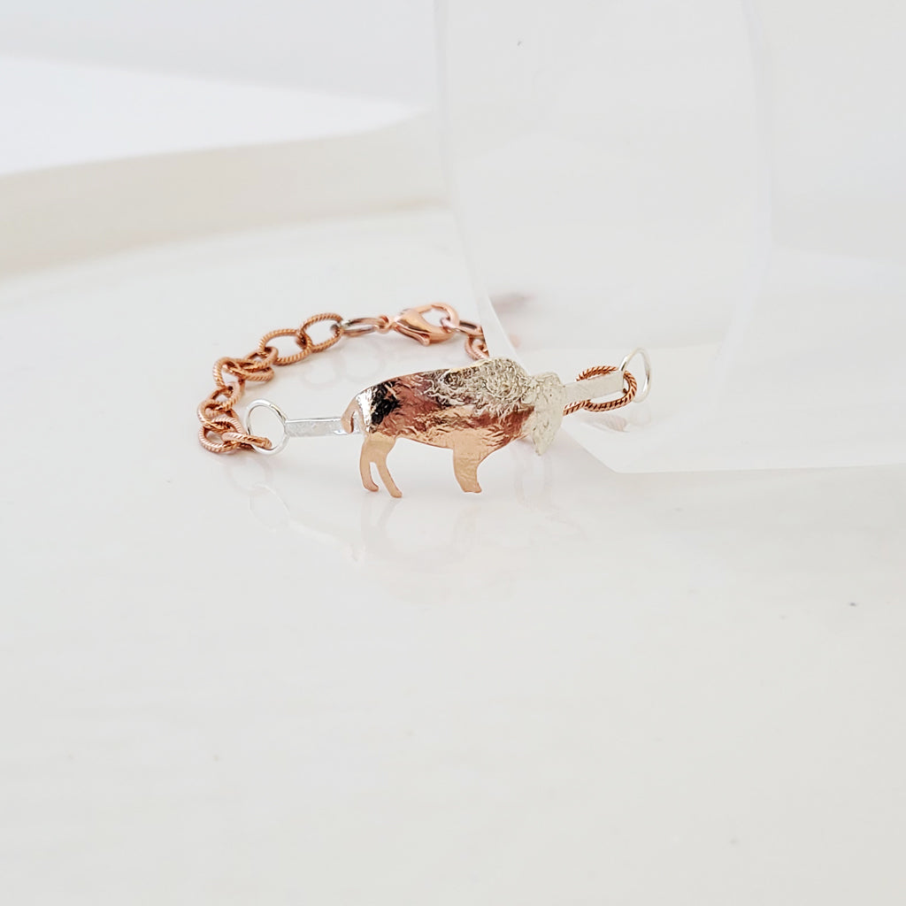 Bison on the Sterling Road - Copper and Sterling Silver Bracelet