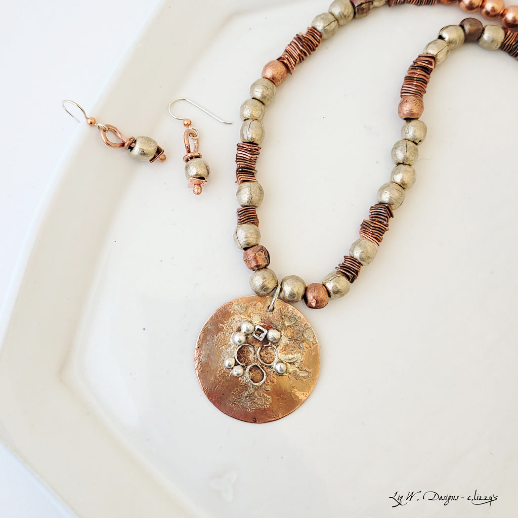 You will receive the exact necklace shown. Due to the handmade nature of the piece and the use of natural metals, subtle variations in color and texture are part of its unique character. Screen resolution may slightly alter color tones.