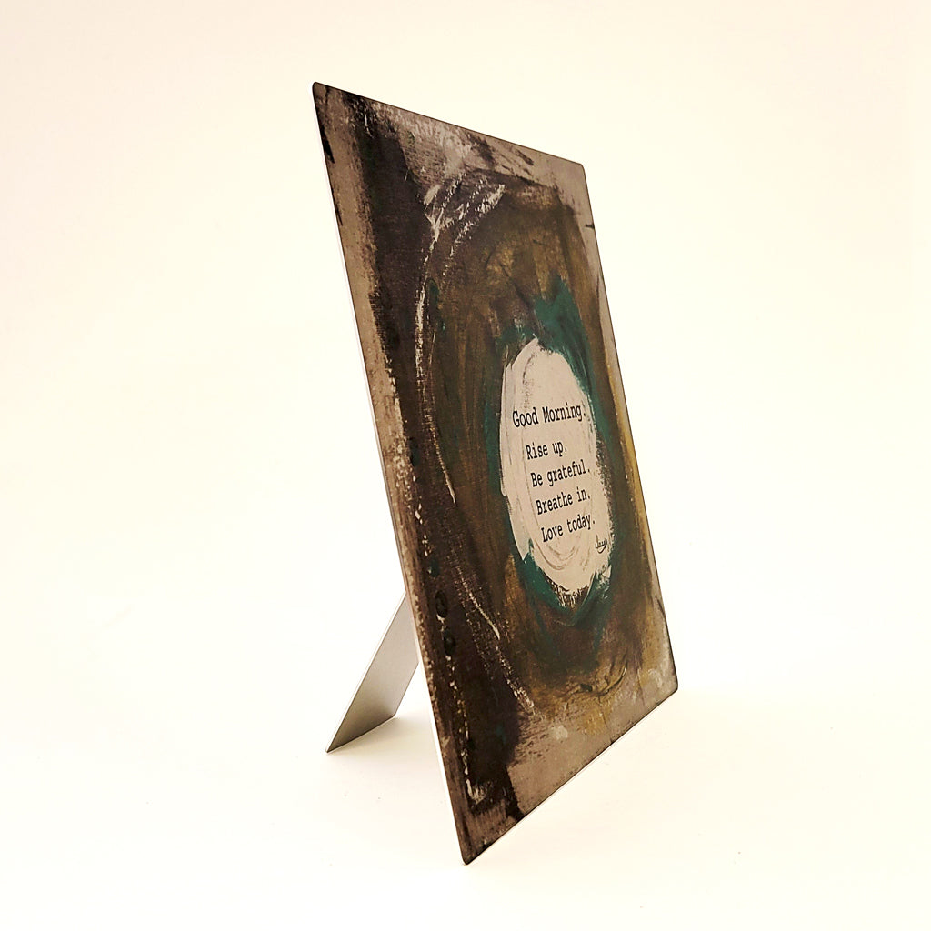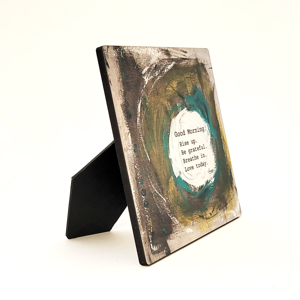“Good morning. Rise up. Be grateful. Breathe in. Love today.”